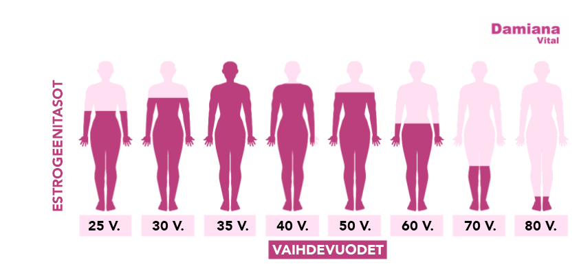 Perimenopaussi on ajanjakso, jolloin estrogeenitaso nousee ja laskee epätasaisesti. Perimenopaussi voi alkaa jo 30-vuotiaana, mutta keskimäärin se alkaa 40 ikävuoden jälkeen. Vaihdevuosien alkamiseksi lasketaan, kun olet ollut 12 peräkkäistä kuukautta ilman kuukautisia.